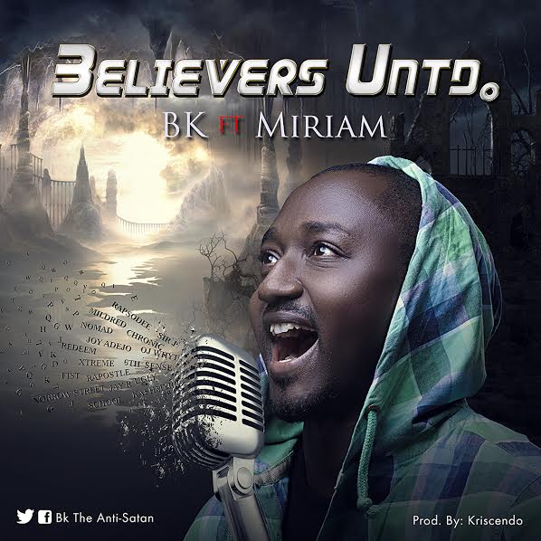 Rapper and song writer BK shares a new tune Believers United. The song is a clarion call to artist (Christians) to com together as one (Unity). Plainly and subliminally, names of about 58 artists was mentioned in the 3 verses of the song; its a wake up call for us all to stand together in 1 Spirit to reach and affect the world around us. He features Miriam on this tune.